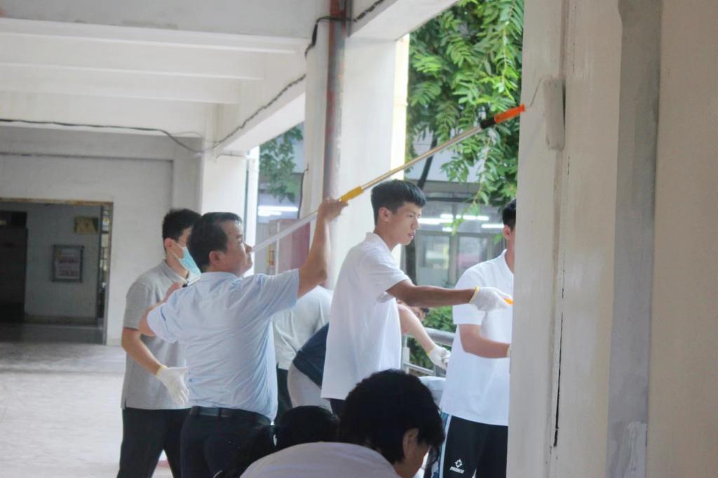 全体师生以主人翁的态度,十足的干劲、饱满的热情投入劳动。清理污渍、打磨栏杆、粉刷墙壁,师生辛勤劳动的身影在教学楼上下穿梭。在劳动实践过程中,大家分工协作,认真探讨劳动要求和劳动工具的使用方法,在沟通解决问题和齐心协力劳作的过程中增进劳动经验,加强感情交流。