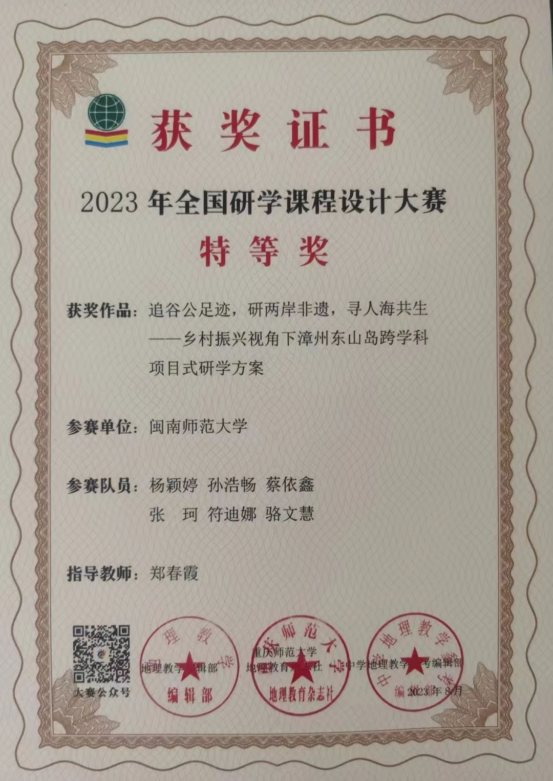 据悉,本届全国研学课程设计大赛共有260多所单位参加,其中高校130多所,参赛作品1100余件。备赛过程中郑春霞老师悉心指导,师生共研选题、精心备赛,反复研讨研学旅行路线与研学课程内容,精心设计了形式多样的研学活动,历经长时间的作品反复打磨推敲,最终获得优异的比赛成绩。