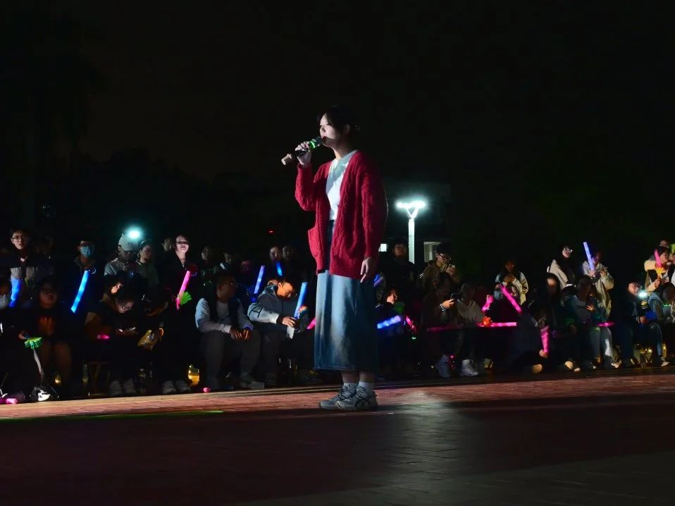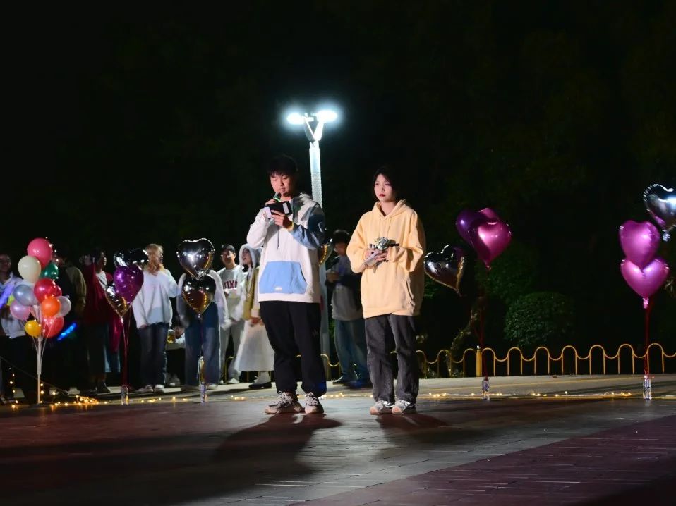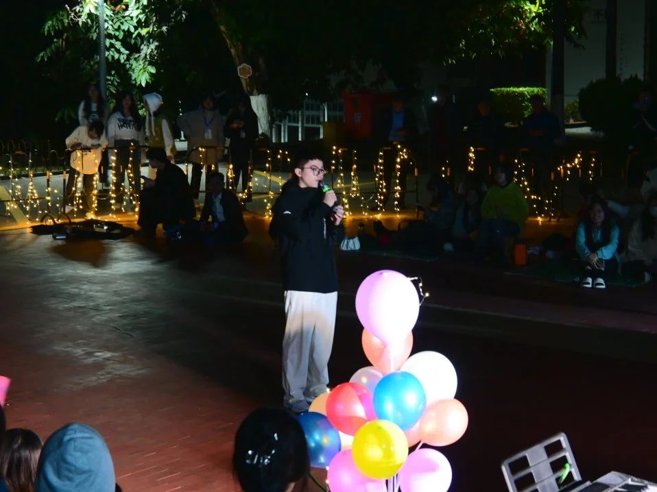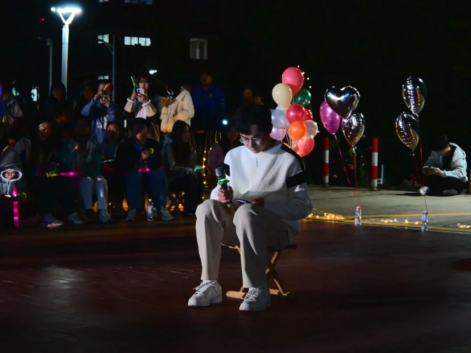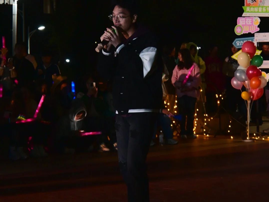 微风正好,同窗相伴,夜幕降临,同学们相继在风向标音乐节立牌前留下合照,将爱留在圆山。