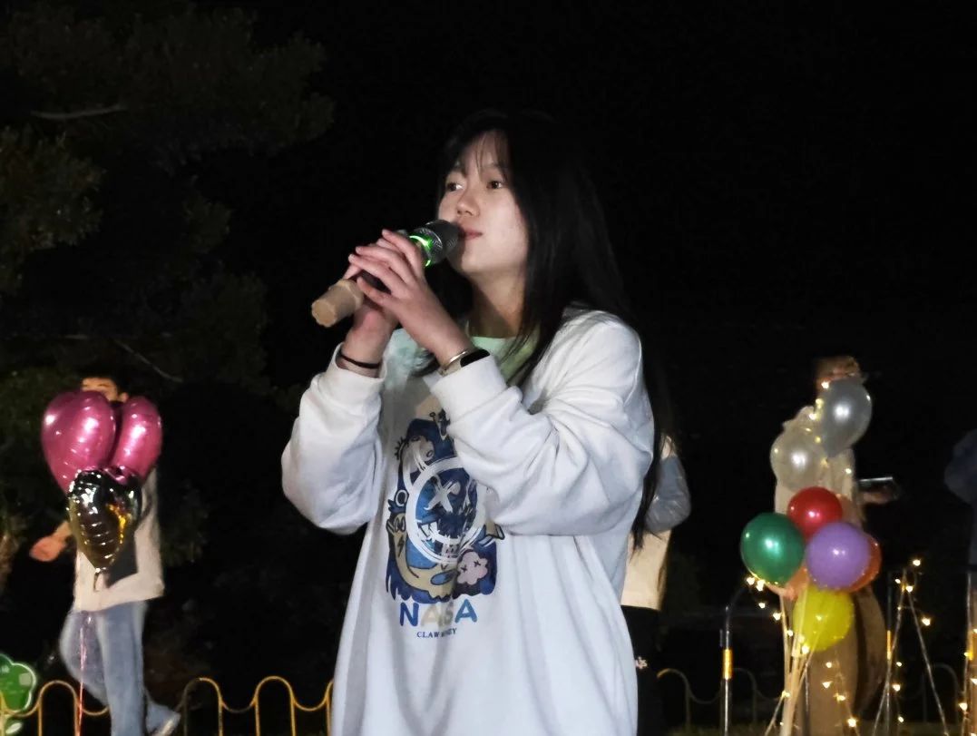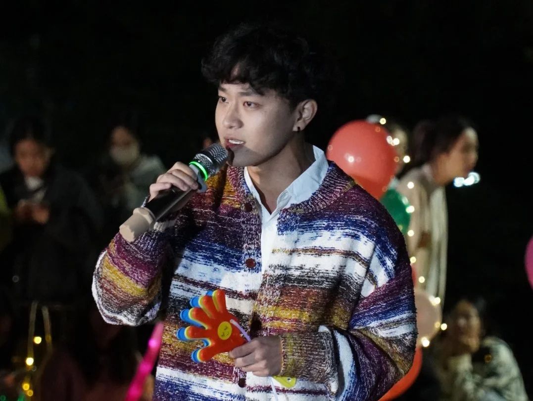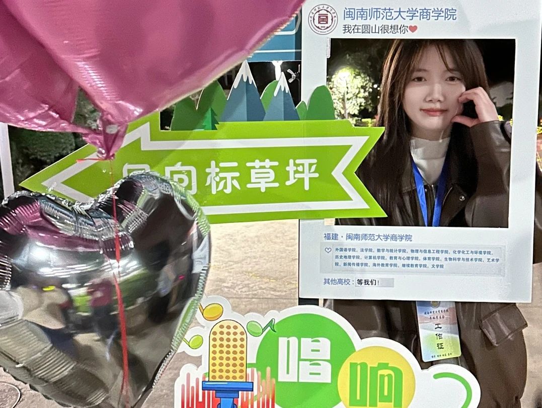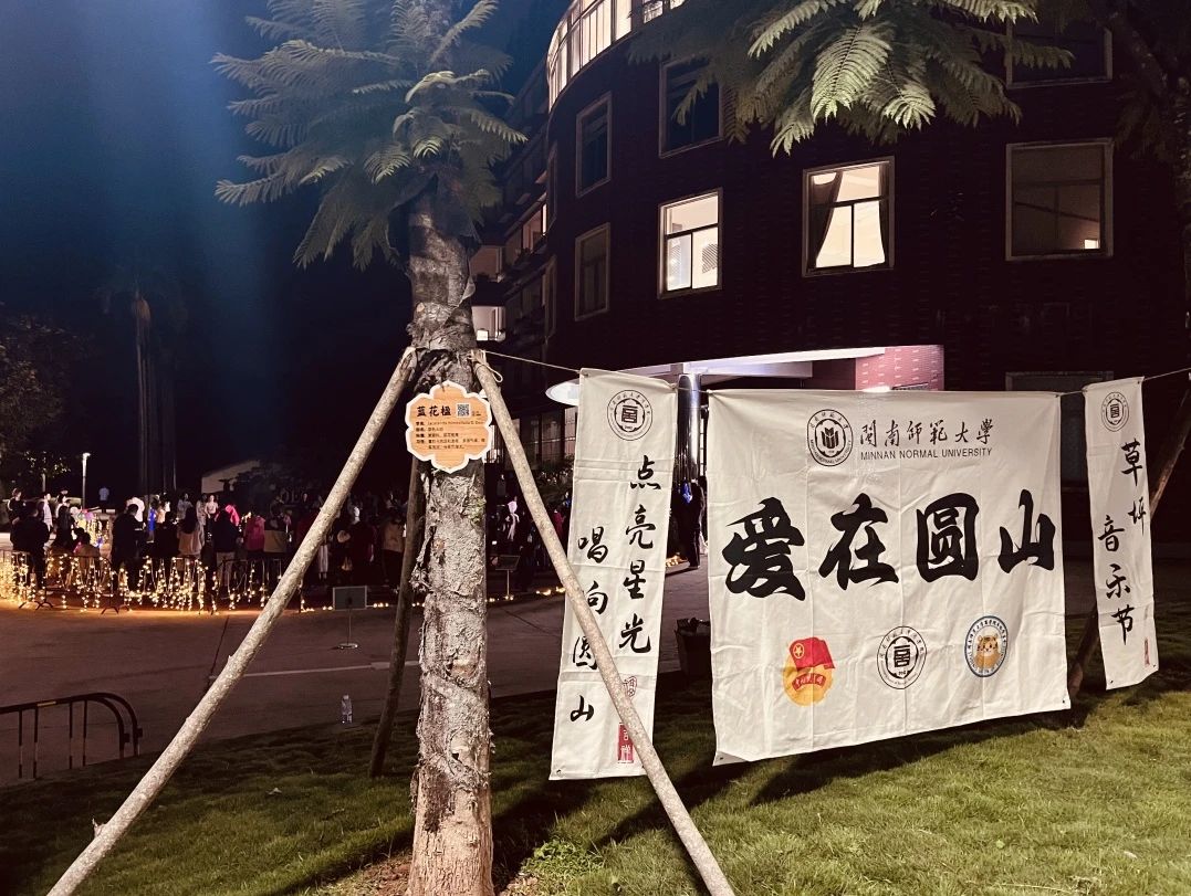 微风正好,同窗相伴,夜幕降临,同学们相继在风向标音乐节立牌前留下合照,将爱留在圆山。