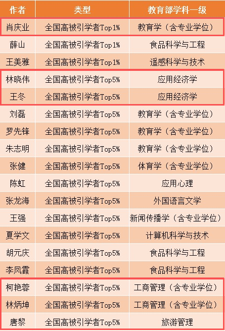 近日,中国知网公布了“2025中国知网高被引学者名单”。我院6位学者凭借卓越的学术影响力成功入选。其中,肖庆业教授跻身全国高被引学者Top1%行列,林晓伟、王冬、柯艳蓉、林炳坤、唐黎5位学者入选全国高被引学者Top5%。