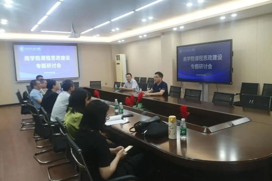 会上,与会老师结合各自专业实际,分享了课程思政建设的实践做法和下一步工作思路,并围绕怎样挖掘专业课程的思政元素、如何优化教学设计以及如何做到如盐在水实现育人效果展开了深入讨论。何圣财强调了加强课程思政建设的背景和现实意义,提出了三点要求:一是提高站位,把示范课程竞赛当做检验和提升课程思政建设水平的一次实战;二是凝练特色,立足商科专业特点,打造有学院辨识度的课程思政品牌;三是协同联动,各教研室之间增进交流,同时,教务科要做好全过程的服务保障。