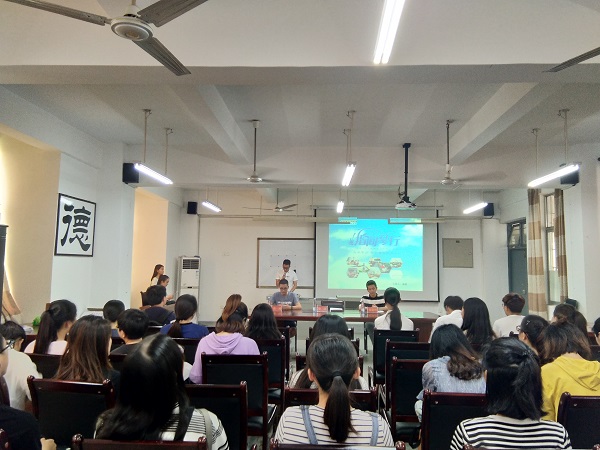 讲座分为嘉宾创业历程及心得、嘉宾答疑解惑、游戏抽奖和拍照留念四个环节。讲座伊始,主讲人蒲潇向大家介绍了创立指间琴行的目的、历程及成就,又分别从创业的勇气、目标、创新精神、团队精神等六方面揭开了指间琴行创业成功的面纱。其中,他指出“1+2合伙人”即一人管理,两人经营的合作模式是指间琴行发展行之有效的新模式。紧接着,谢一博分别就“大学生为什么要创业?”“为什么要支持大学生创业?”等几个问题中分享了他创业过程中的心路历程。随后,钱朝靖作为指间琴行优秀的吉他教师与大家分享了他在教学中的感悟。最后,蒲潇在为同学们答疑解惑时说,创业只有出于内心的热爱,加上明确的目标和勇敢追求,才会创造出自己想要的生活。