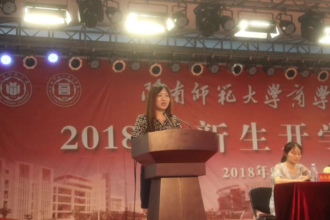 其次,由新生代表人力资源管理专业的王冰冰同学发言,他强调核心价值观对于现代大学生是非常重要的,新学期开始,对于18级新生而言,未来还有更多的挑战需要披荆斩棘所向披靡,要以优秀的学长学姐为榜样,尊重师长老师。树立切时长远的奋斗目标,用勤奋刻苦踏实走好每一天的路。