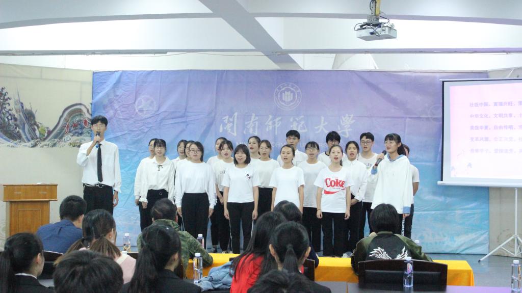 此次活动按照“看一部短片、诵一段经典、演一段小品、做一个展示、唱一首歌曲、做一番点评”六个环节进行,讲堂以宣传片《社会主义核心价值观》拉开帷幕。 今有国法家规时刻规范行为,而古有圣贤对学生的言行规范,朗朗上口的《弟子规》,带同学们领略了仁爱之美。小品《作弊记》,以幽默风趣的语言向同学们演绎了“作弊反被作弊误”的事件。“不学礼,无以立。”17旅本2班通过实地展示,以其彬彬有礼的风貌获得了观众的阵阵掌声。社会主义核心价值观是优秀传统文化的精华所在,18经统班用社会主义核心价值观之歌将满满的正能量唱进每个人的心里,激起到场人员的一致喝彩。