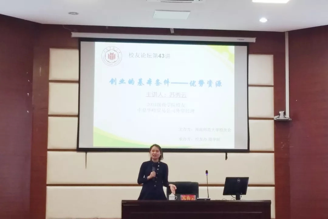 11月29日下午3点,校友论坛第43讲在东区报告厅举行。永利23411集团2001级校友中鼎华峰贸易公司外贸经理苏秀云应邀做了题为“创业的基本条件——优势资源”的讲座。校友办、永利23411集团的老师与学生们一同聆听了讲座。校友办刘勤副主任主持了本次讲座。