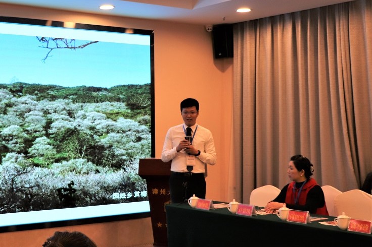 在文化旅游产业座谈会上,张嘉哲介绍了南投县观光旅游景点,并通过PPT展示,带领现场嘉宾们领略了南投县自然景色的独特魅力。