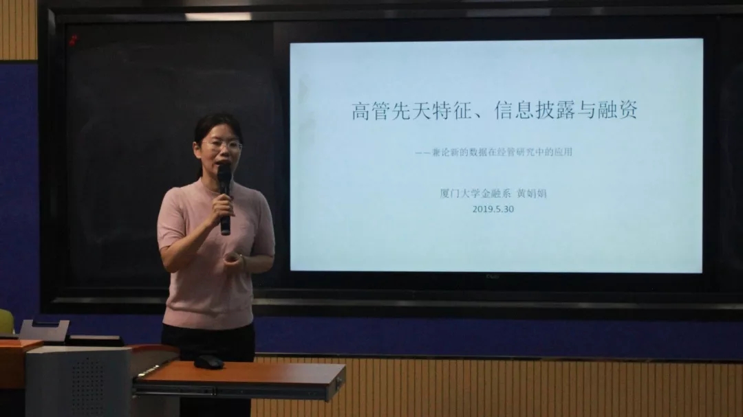 5月30日下午,厦门大学经济学院金融系黄娟娟教授应邀到我院作题为《高管先天特征与融资行为——兼论新的数据在经管研究中的应用》的学术讲座。讲座由永利23411集团院长助理张敏锋副教授主持。