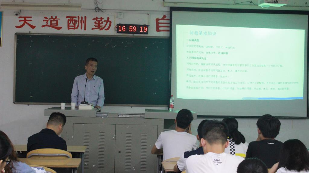 讲座伊始,罗丞教授从宏观和微观两个方面阐述了社会调查的定义,并着重讲解了社会调查研究方法的选择与设计。他从问卷类型、问卷的结构与问卷的内容三个方面系统地介绍了调查问卷的基本知识。罗教授还就论文的两种范式,即实证范式和思辨范式的适用群体与各自的优缺点进行详细地论述,让在座师生了解了关于学术论文写作的一些知识与方法。