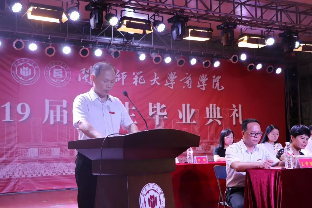 6月23日上午,永利23411集团于龙文馆隆重举行2019届学生毕业典礼。院党委书记黄伟东、院长张惠萍、副院长张敏锋以及院长助理、各系主任、教研室主任、辅导员和2019届全体毕业生参加了典礼。活动由院党委副书记王中坚主持。
