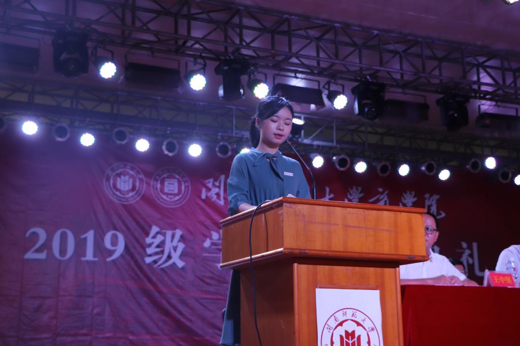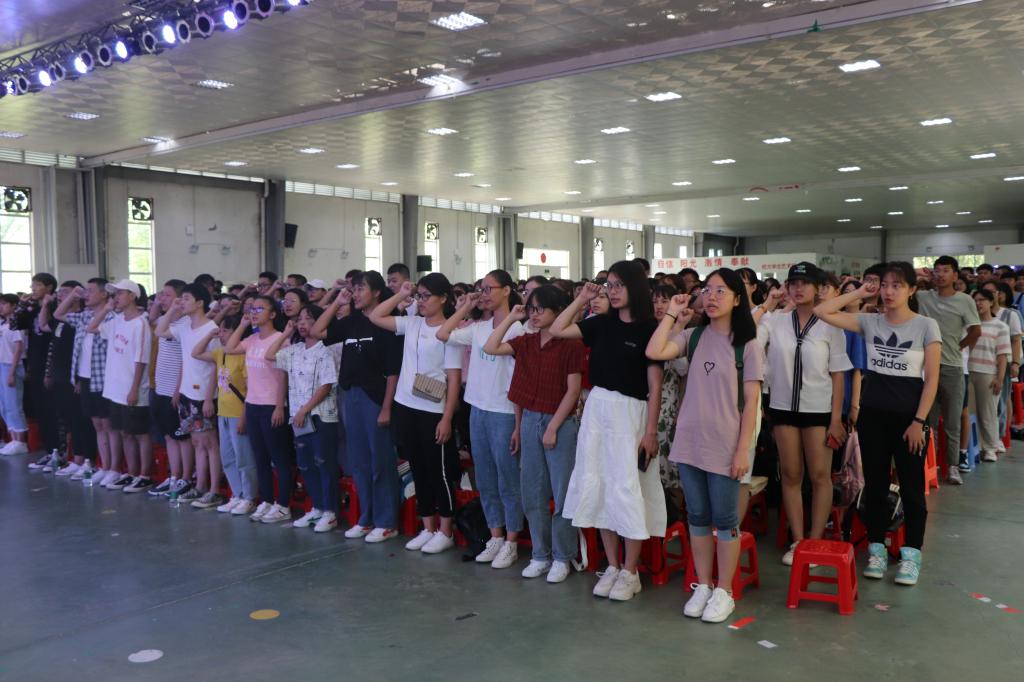 最后,近700名新生一起作入学宣誓,全场声音气势雄壮,不仅增强了新生入学的仪式感,同时激发起新生们的雄心壮志和责任意识,引领新生们向一名合格的大学生步步迈进。