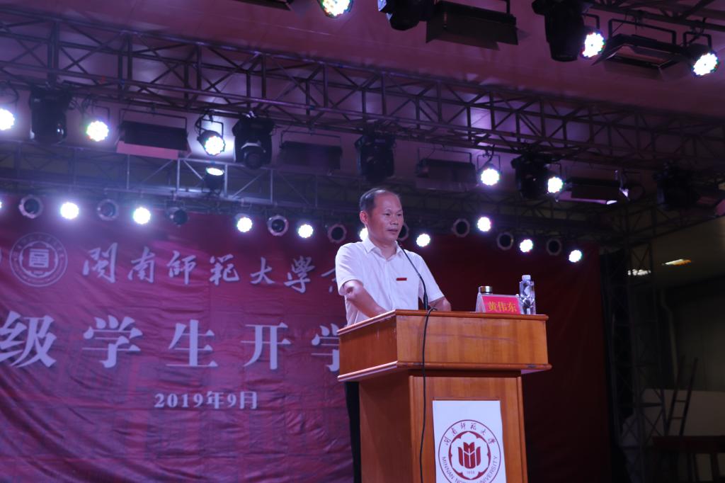9月8日上午,永利23411集团党委书记黄伟东于龙文馆为19级新生讲授开学第一课《以梦为马,不负韶华,做奋发有为的新时代大学生》。