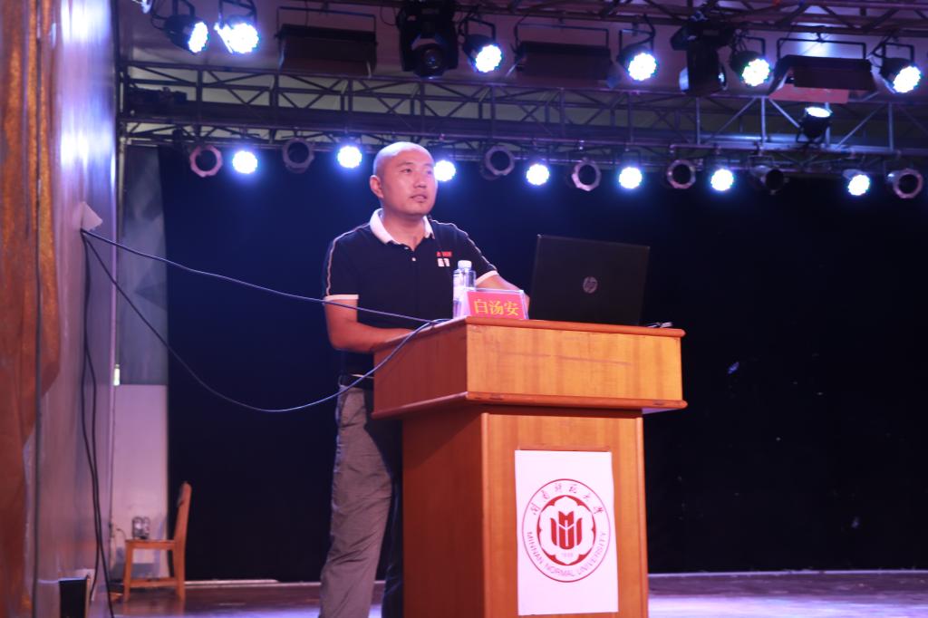 保卫处白汤安老师为新生讲授《安全与法制》。白老师从消防安全、防盗防骗等方面展开。他用丰富的案例和详实的数据突出校园安全工作的紧迫性和必要性。同时对各类安全问题进行了详细的讲解,并向新生介绍相应的应急措施。授课内容提高了新生们的安全警惕性,对预防各类危险的发生起到了积极作用。