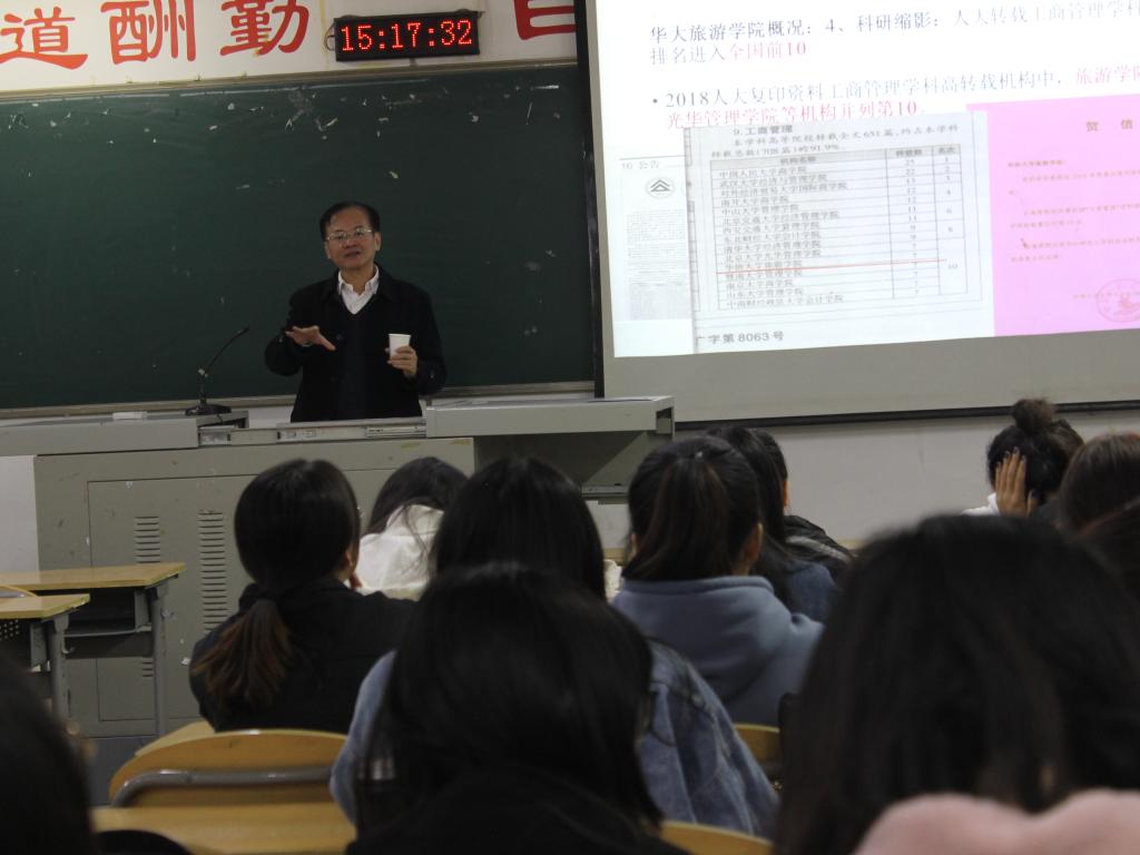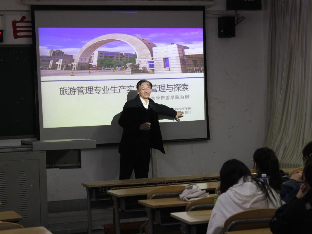 近日,华侨大学旅游学院黄远水教授应邀到我院作题为《旅游管理专业的生产实近日习——与本科同学的对话》的学术讲座。讲座于笃行楼220教室举行,由我院曾明华教授主持,永利23411集团旅游管理专业部分同学参加了此次讲座。