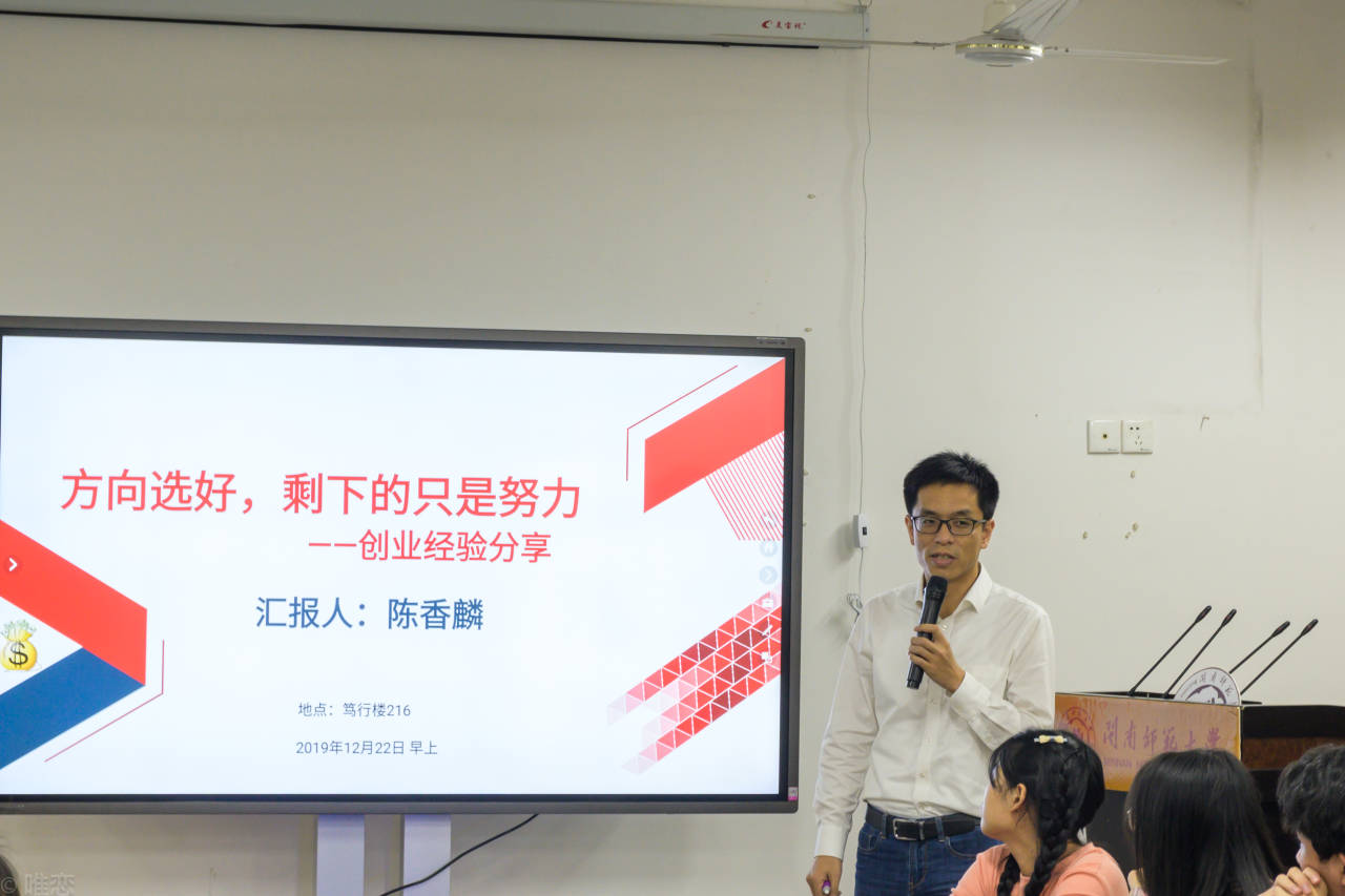 陈香麟先生以《方向选好,剩下的只是努力》为题作创业经验分享。他认为,创业首先要明确自己的创业目标并制定详细计划,学会在实践中调整创业计划。同时要懂得审时度势,抓住机遇,增强自己作为创业者的主观能动性。陈先生希望同学们能够成为“我可以离开公司,公司离不开我”的人。陈先生还回答了同学们提出的疑问。