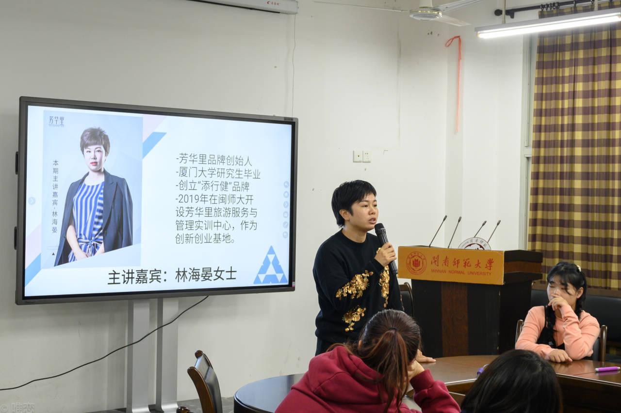林海晏女士围绕“发现自已”与“如何用未来的自己与当下对话”两个话题分享了她的创业经验。林女士强调了找对创业目标的重要性,她提议同学们要善于发现自己的性格特点,以此来寻找到自己的创业目标,要在创业中找到自己的榜样,以榜样作为前进方向。