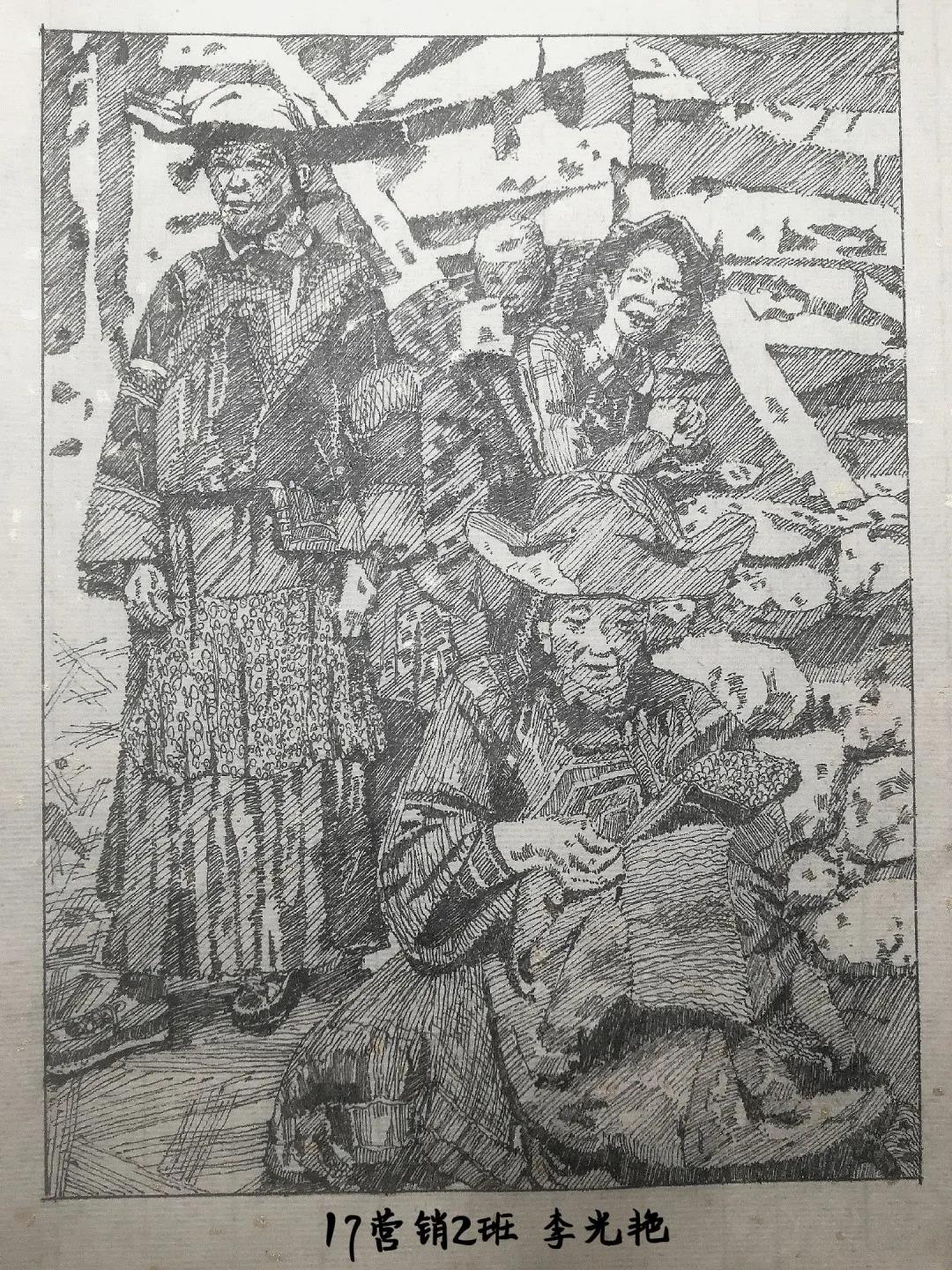 在抗击疫情的战斗中,乐观坚强是中华民族共同展现出的精神风貌。李光艳同学生动地描绘了来自云南文山彝族同胞在疫情时期的日常生活之景。炭笔下的世界虽只有黑白两色,但彝族人生活的美好多彩跃然纸上,充分表现了彝族同胞对于平凡生活的热爱以及对疫情的乐观心态。