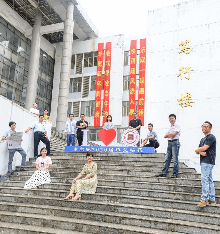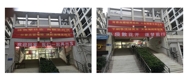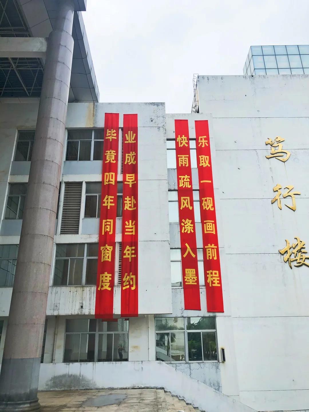 笃行楼四条醒目的条幅是一首藏头诗,祝福2020届学子“毕业快乐”。