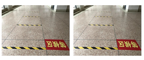 为引导学生有序办理手续、不扎堆,笃行楼已经提前贴好了一米线和等候区、留观区标志。