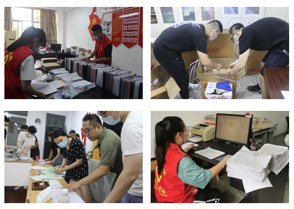 在迎接现场外,也是一片繁忙景象,志愿者们协助老师归档毕业生党员材料,毕业班学生干部帮忙分发填写毕业生登记表、诚信档案、证书封面等毕业材料。大家分工合作,秩序井然,及时高效为毕业生办理各项毕业手续。