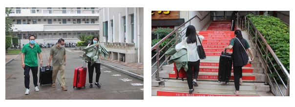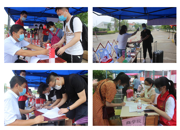 他们以饱满的热情接待指引毕业生办理返校手续,认真细致地做好体温测量、行程询问、签到登记,温情的递上准备好的矿泉水,送上学院赠予的纪念品。遇到行李较多、提不动的学生,辅导员老师和志愿者还会上前搭把手帮忙提行李,让返校学子感受到家的亲切。