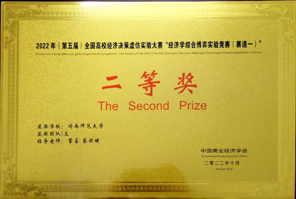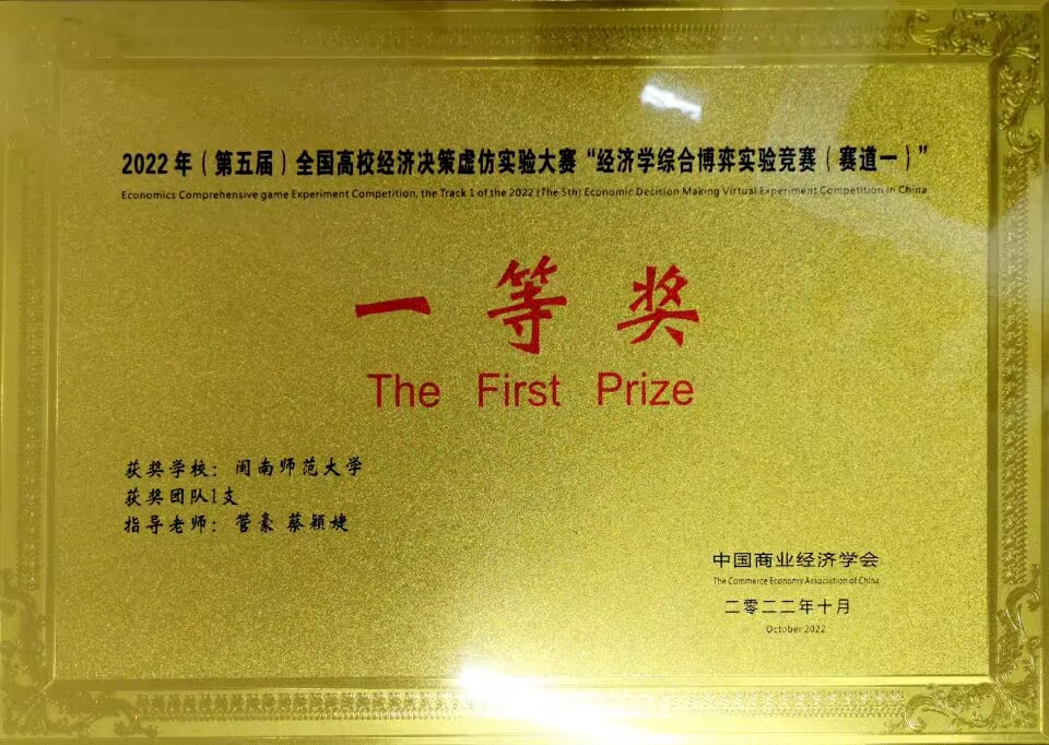 近日,由中国商业经济学会主办,深圳北理莫斯科大学承办的2022年全国高校经济决策虚仿实验大赛总决赛以线上形式举行。由我院管豪老师和蔡颖婕老师指导的两支参赛队伍表现优异,分别获得总决赛一等奖1项、二等奖1项。