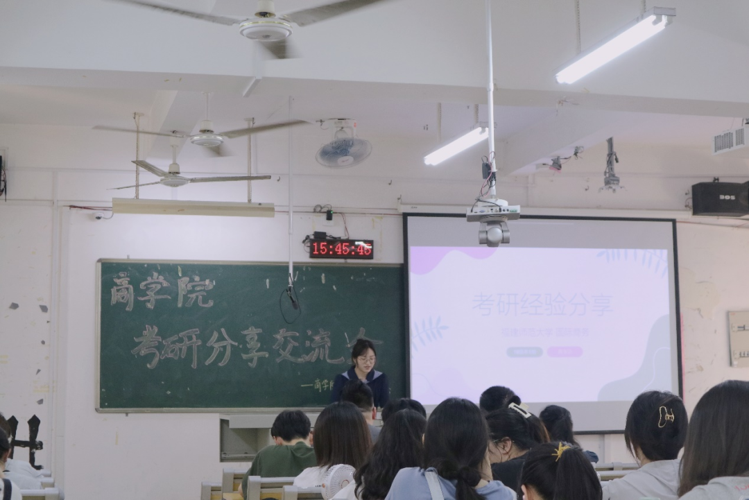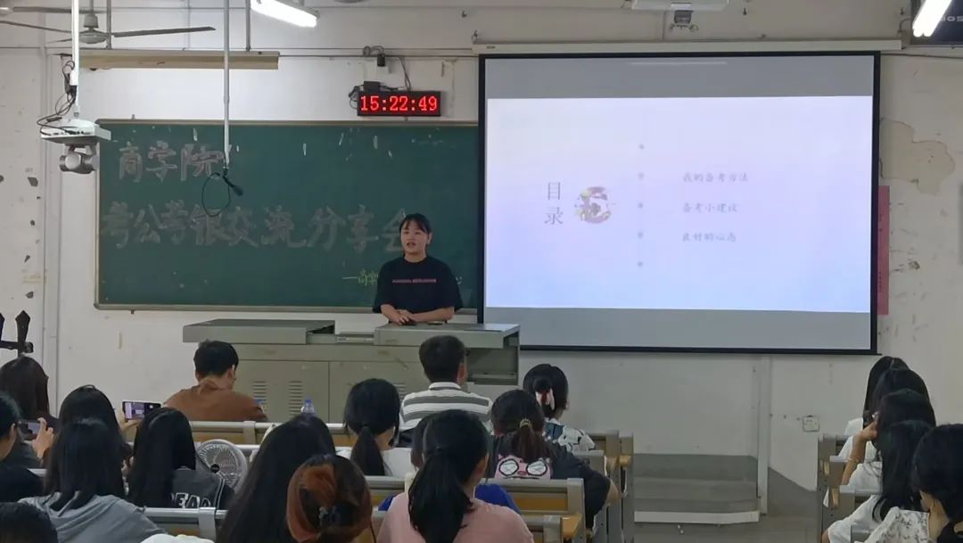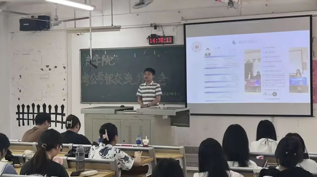 蔡珍娜学姐在分享会上从考研重要时间段、院校选择等多个方面给予分享;吴容光学长为同学们分析了留学的各个流程规划;黄玉洁学姐结合自己的备考过程,帮助同学们进一步规划考研时间、细化课程复习框架;邱健彬学长从自我认知、备考时间安排以及职业生涯规划等方面为大家分享了考公经验;黄雅雯学姐强调在漫长的备考旅途中一定要保持良好的心态,脚踏实地;姚星晖学姐结合当前公务员基本考情以及自身经验传授备考技巧,着重说明了国考与省考的差别以及有关选调生的注意事项;吴泽涛学长重点强调了考银过程中应注意的事项及考试内容,为同学们的考银之路查缺补漏。