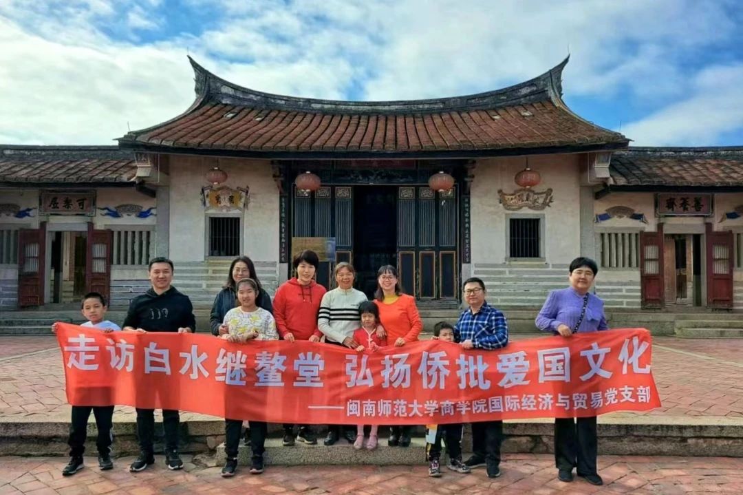 “爱国主义是中华民族精神的核心。”习近平总书记多次强调“爱国”的重要性、要求弘扬爱国主义精神,引领中华儿女培养爱国之情、砥砺强国之志、实践报国之行。为把爱国主义教育贯穿国民教育和精神文明建设全过程,深化爱国主义教育研究和爱国主义精神阐述。国际经济与贸易党支部结合党建与业务融合项目《闽南侨批的爱国教育素材挖掘及国贸课程思政教学创新》,于11月26日组织支部党员开展“走访白水继鳌堂 弘扬侨批爱国文化”主题党日活动,用实践教育推进侨批爱国文化和国贸课程思政有机融合。