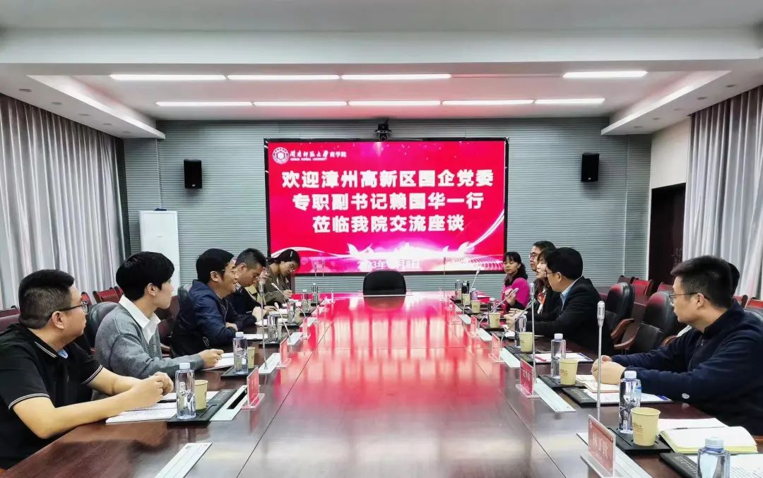 12月8日上午,漳州高新区国企党委专职副书记赖国华一行来我院交流。院党委委员、副院长何圣财会见来宾并出席座谈会。我院院长助理、系主任、党支部书记参加座谈。