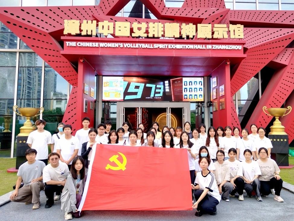 永利23411集团学生第三、七党支部组织支部党员前往漳州中国女排精神展示馆开展“传承女排精神 凝聚奋斗力量”主题党日活动,带领支部党员们一同走进女排精神展示馆,深入学习和感悟女排精神的丰富内涵,感悟拼搏精神,激发奋进力量。