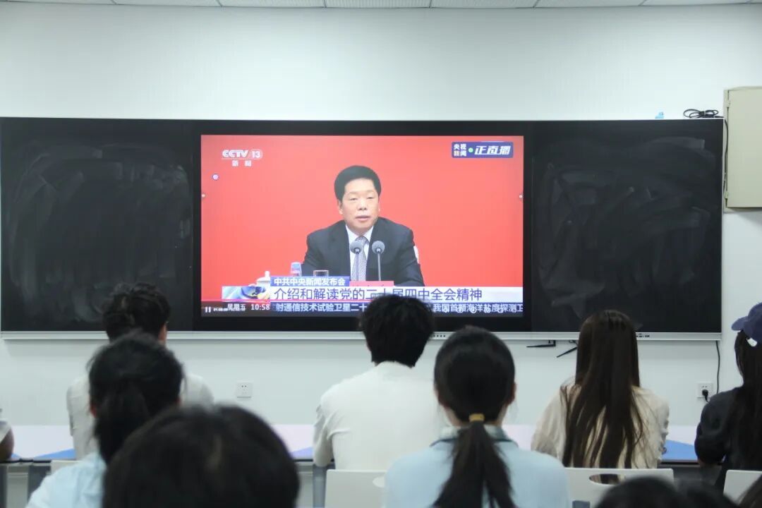 现场师生认真聆听,反响热烈。大家一致表示,要将全会精神融入教学科研与个人学习,坚定理想信念,练就过硬本领,为培育卓越商科人才、服务国家发展大局贡献力量。