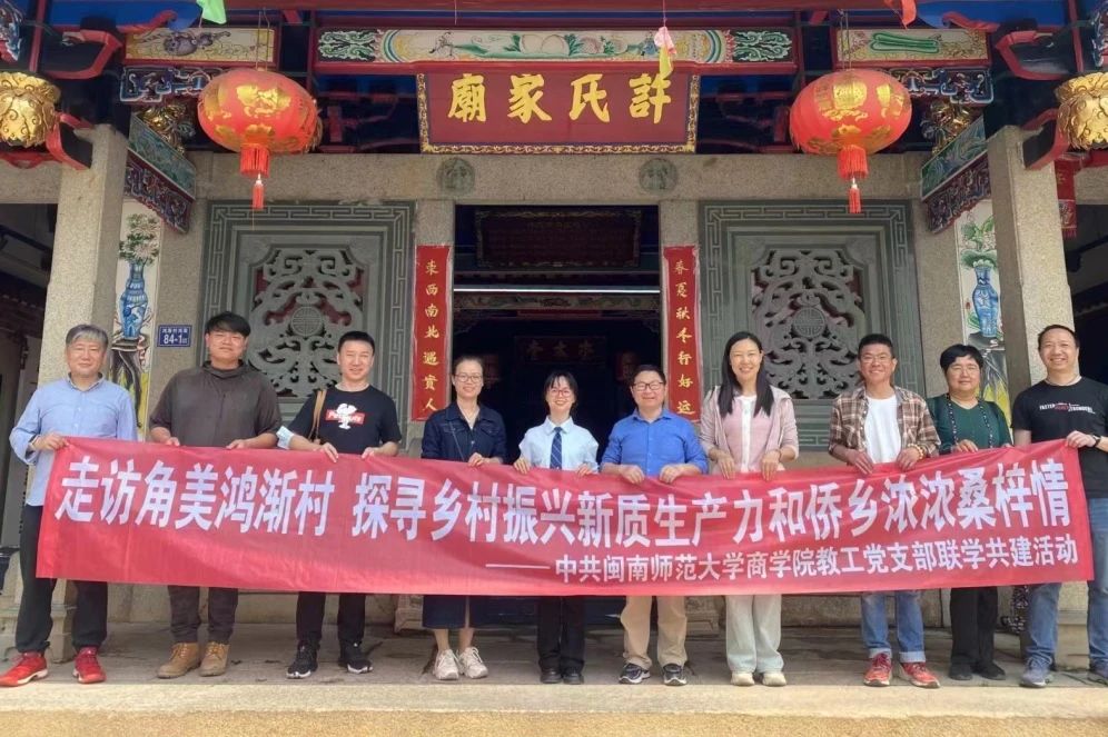 2024年3月30日,中共永利23411集团国际经济与贸易学党支部、旅游管理党支部和经济统计学党支部开展联学共建活动,共同组织党员同志走访漳州台商投资区鸿渐村,探寻乡村振兴新质生产力和侨乡浓浓桑梓情。
