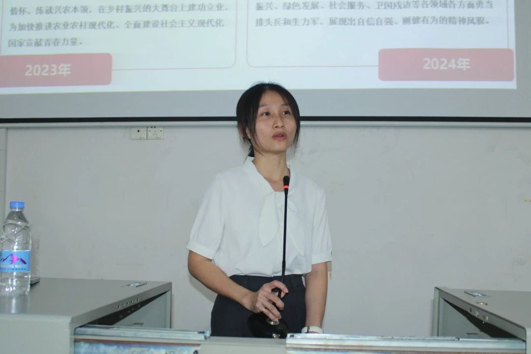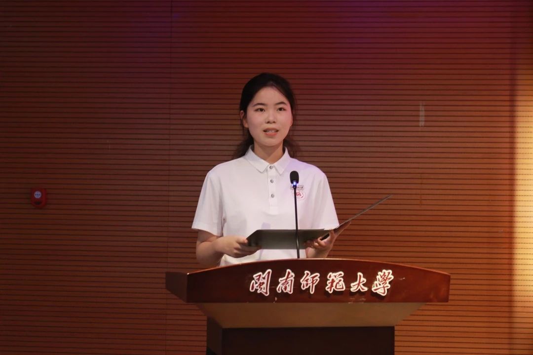 优秀学员代表林佳莹同学分享了参与本次培训班的心得。她向学院党委、授课老师以及班主任们致以诚挚的感谢,表示日后定将持续巩固党校培训成果,并代表全体学员郑重承诺,在今后的学习生活中做到以下三点:第一,初心不改,坚定理想信念,筑牢信仰之基、补足精神之钙、把稳思想之舵、践行初心之路,做“眼中有光”的新青年。第二,笃行不怠,锤炼过硬本领,学习中国共产党人一往无前的实干精神,在新征程上增智慧、明方向。第三,行稳致远,保持优良作风,肩负历史使命,继承优良作风,以良好的道德品质和行为规范践行社会主义核心价值观。