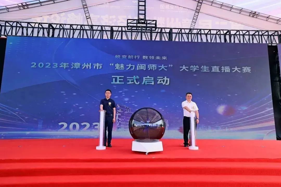 2023年4月20日,我院受邀参加第二届数字经济高峰论坛并在峰会上正式启动漳州市“魅力闽师大”直播大赛。永利23411集团党委副书记蔡滨,漳州信息产业集团党委书记、董事长沈海石上台进行启动仪式,永利23411集团辅导员吴智军,部分学生代表参加。