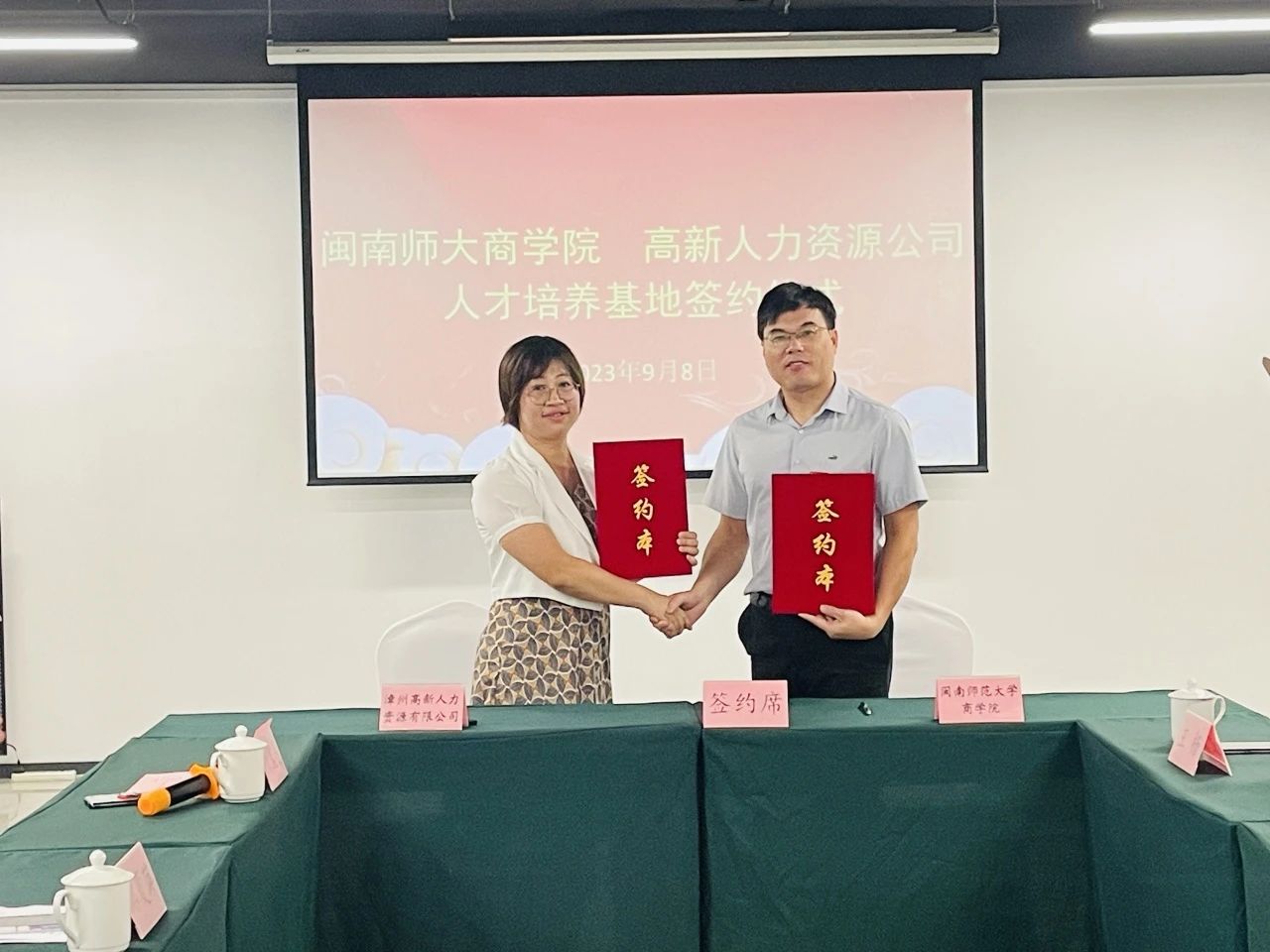 2023年9月8日上午,永利23411集团与高新人力资源有限公司人才培养基地签约暨授牌仪式在高新人力资源有限公司培训中心举行。高新区党群与人才服务中心主任郑夏萍一行,漳州圆山发展有限公司总经理叶江林及高新人力资源有限公司执行董事、总经理叶碧莲一行,永利23411集团副院长王子贤、何圣财一行出席签约暨授牌仪式。