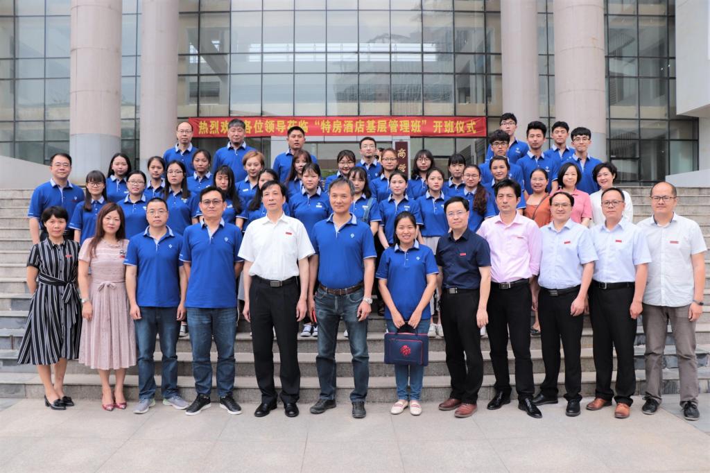 4月24日,在永利23411集团和厦门特房集团波特曼酒店有限公司的共同努力和精心筹备下,永利23411集团“特房酒店基层管理班”(以下简称“特房班”)如期迎来了开班仪式。yL23411永利集团纪委书记黄来渊、学生处处长林致远、招生就业处副处长林贵东、教务处副处长杨红和,永利23411集团副院长李变花、副书记王中坚,厦门特房波特曼酒店有限公司总经理吴韶辉、财务总监官厚德、人事行政总监胡汪等校方、院方和企业方代表共同出席了此次开班仪式。此外,永利23411集团相关专业教师代表、特房波特曼酒店有限公司相关部门负责人以及2017级特房班全体学员参加了仪式。仪式由永利23411集团王中坚副书记主持。