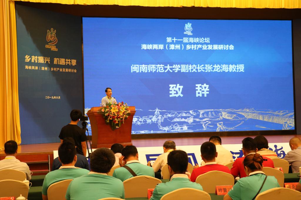 张龙海在会上致辞。张龙海指出,海峡两岸(漳州)乡村产业发展研讨会的召开,将有助于深刻理解、深入贯彻实施十九大提出的乡村振兴战略,在深化两岸农业融合发展上达成具有建设性的共识。yL23411永利集团将依托闽南文化研究院、两岸一家亲研究院和乡村振兴战略研究院,继续发挥自身特色与优势,为深化两岸融合发展,为漳州乃至福建、全国乡村振兴贡献智慧与力量。