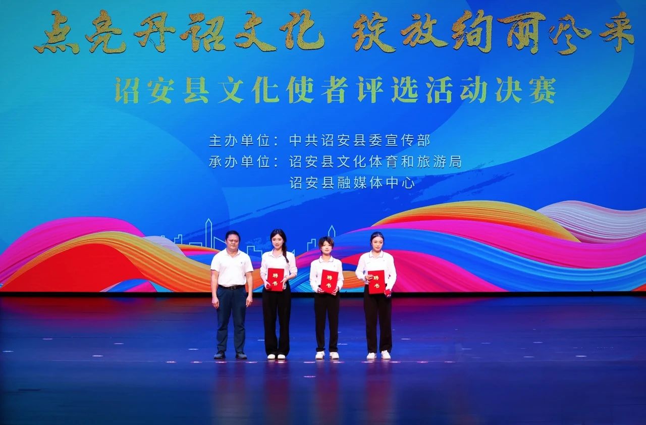 比赛现场,我院学子紧紧围绕诏安的“八大名片”、主要景点、非遗项目、红色文化资源、宣传文化阵地、文化名人六大主题进行文化推介,并为观众带来朗诵、声乐、舞蹈等众多精彩节目。此次比赛中,我院陈冉、司可欣、林嘉译3位同学获聘诏安县“文化使者”,县人大常委会副主任陈立生为他们颁发聘书。