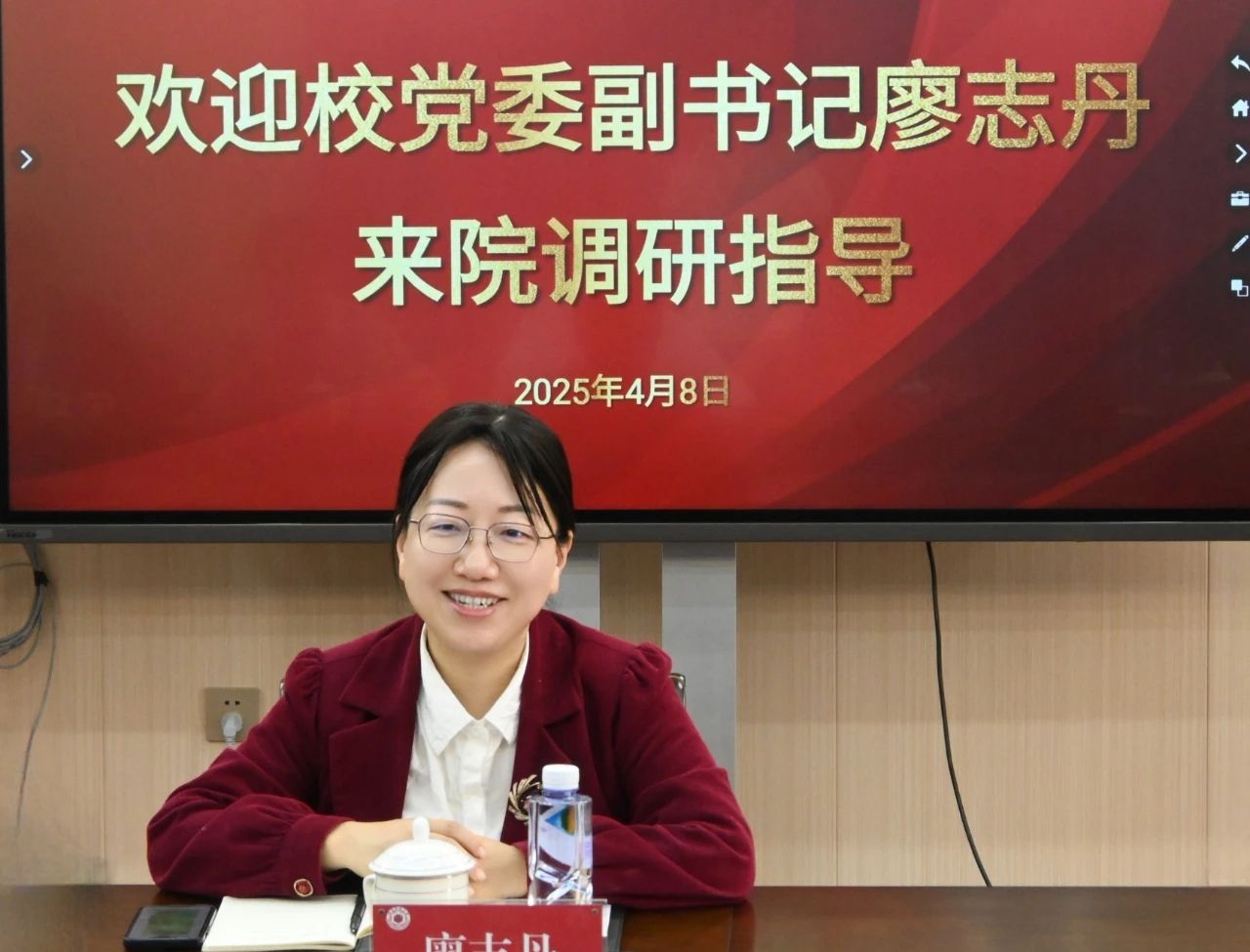 4月8日上午,校党委副书记廖志丹到永利23411集团开展专题调研,学院党政领导班子成员参加座谈。