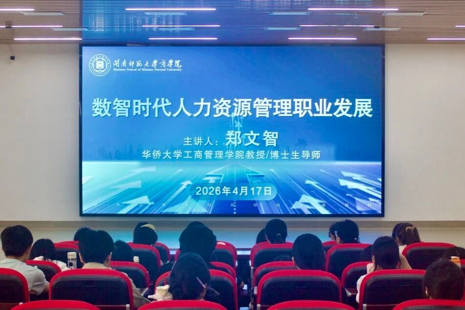 4月17日下午,郑文智教授作学科建设与专业发展专题学术讲座。讲座立足数智时代,聚焦人力资源管理数字化转型与人才培养创新,深入剖析智能技术对行业生态与人才需求的深刻变革。他结合前沿趋势与实践案例,为学院专业建设和师生职业发展提出针对性建议,有效拓宽了与会师生的专业认知与发展视野。