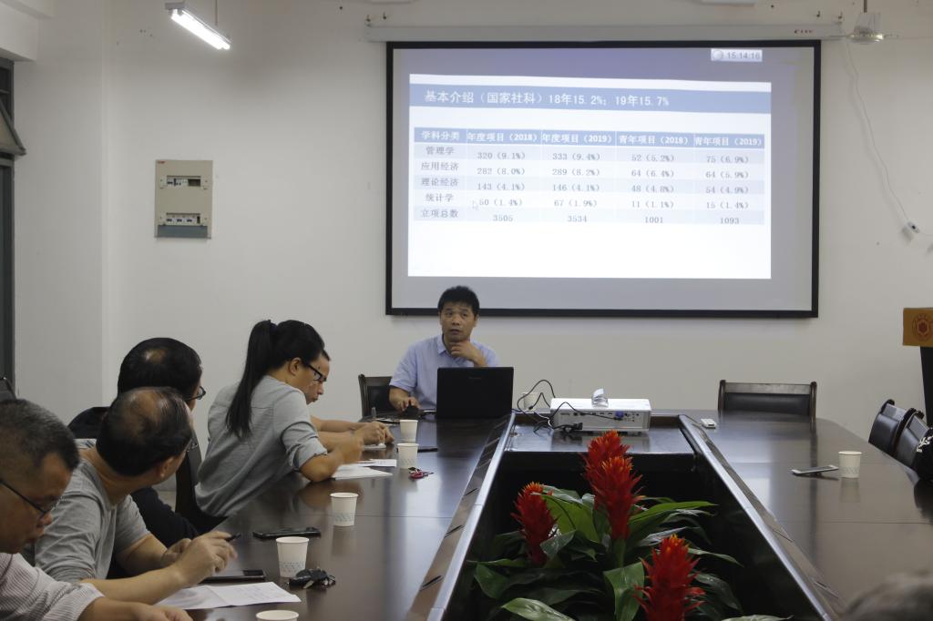 下午,衣教授于笃行楼216会议室与我院相关专业的教师座谈。衣教授首先结合他从教以来自己研究主题的选择变化历程,以及华侨大学国社申报情况,阐述了在教师平时科研选课以及国家社科课题申报时选题应注意的问题。其次,衣教授结合自己的经验,从申报学科选择、文献综述、研究目的、研究内容、研究方法等多个方面,介绍了撰写国家社科基金申请书的注意事项,并着重强调了选题对申报的重要影响。最后,衣教授与部分老师就项目连续申报、研究数据获取、申请书的一些细节问题等进行了交流。
