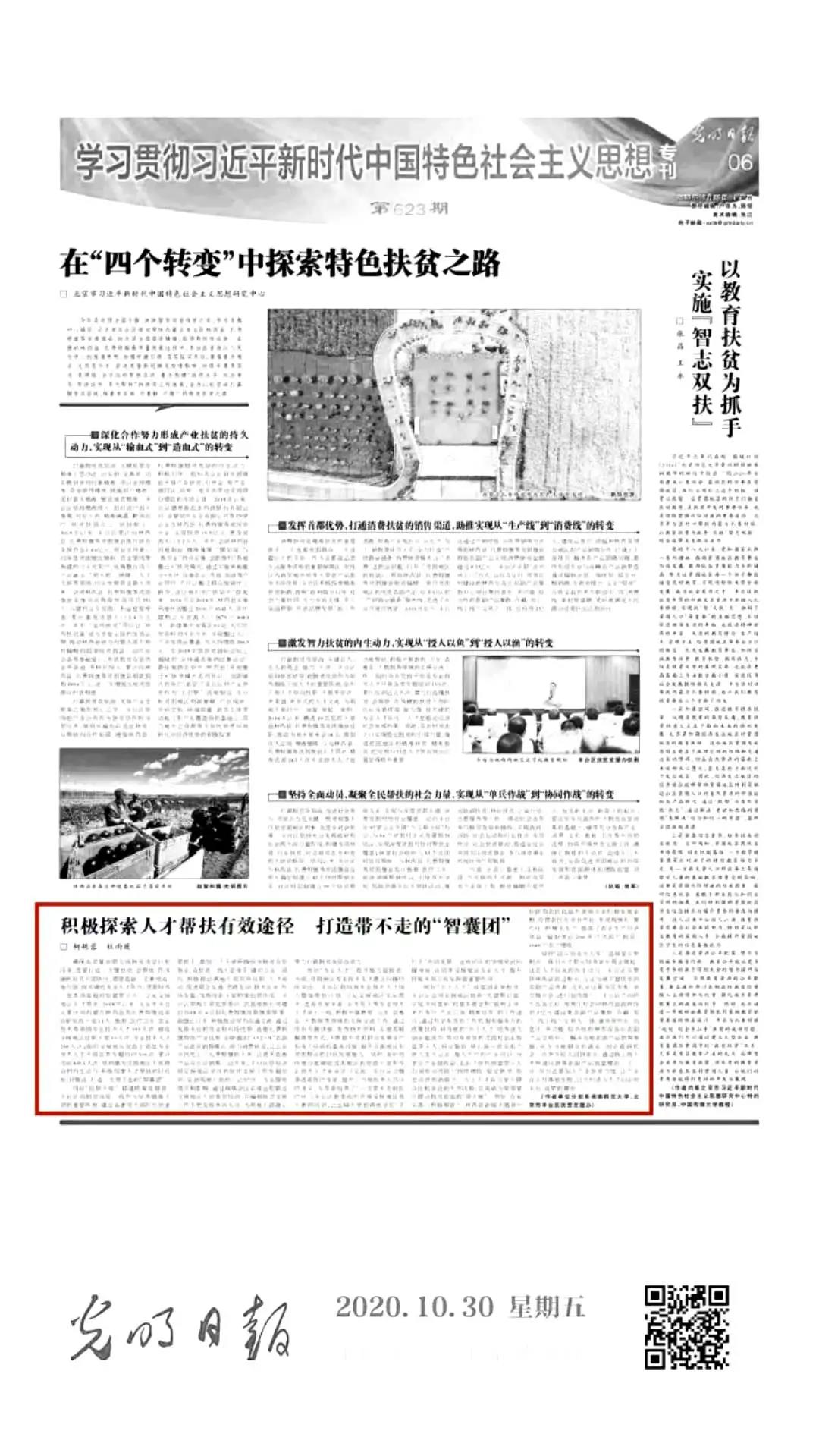 日前,永利23411集团柯艳蓉博士在《光明日报》“学习贯彻习近平新时代中国特色社会主义思想专刊”发表文章《积极探索人才帮扶有效途径 打造带不走的“智囊团”》。