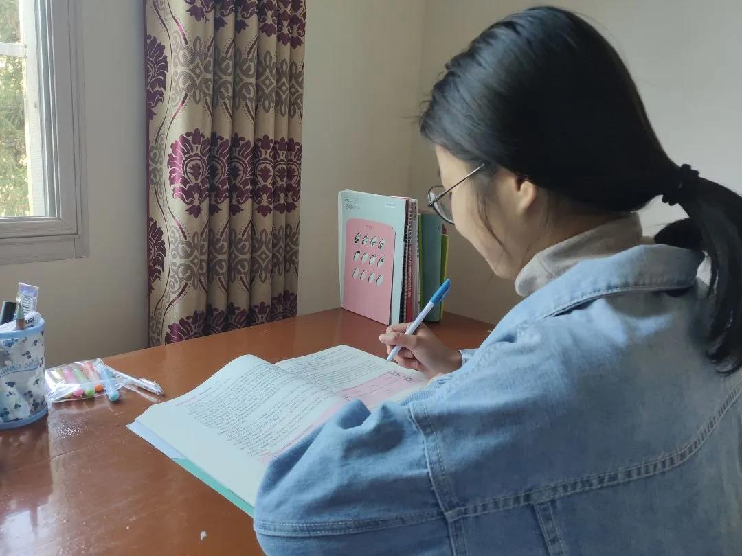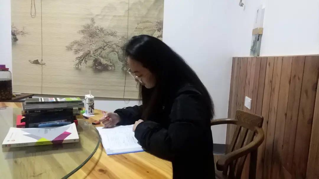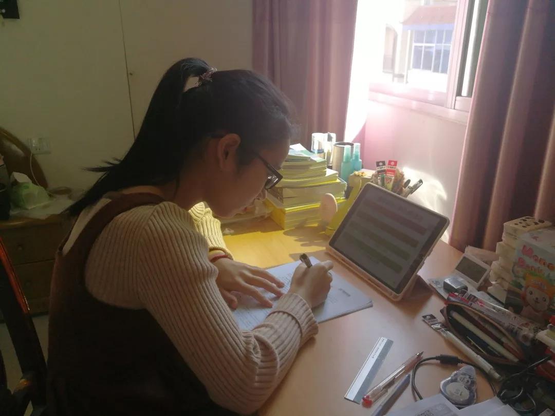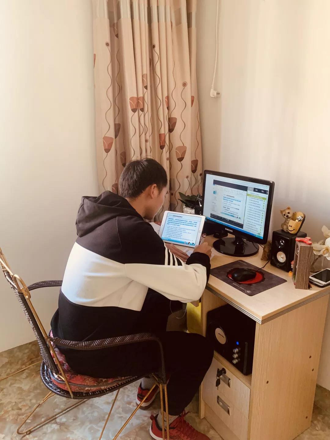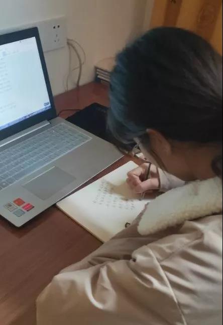 17人力班陈冬香:当听到延迟开学的消息时,她表示理解。停课不停学的这段时期,除了每天按照课表上网课以外,她总是抱着考研书籍刷题,跟在学校时的学习状态相差无几。她说:“当我们不能做什么的时候,请在内心的世界安放一张书桌,潜下心来求知向学,这样你的心情就会是淡然乐观的。希望大家都健康平安,期待春暖花开时,在阳光下,在春风里,与你们在校园重逢。”