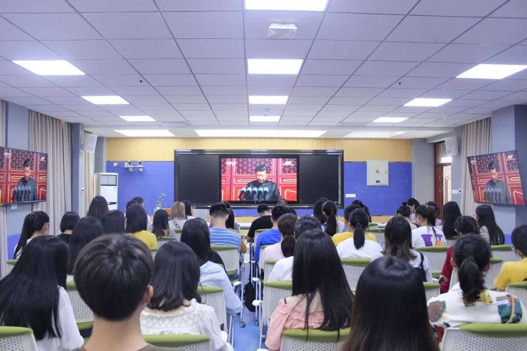 在收看会上,全体师生时刻关注荧屏中的大会进展,认真学习总书记在会上的重要讲话精神。在整个观看过程中,大家切实感受到祖国70年的沧桑巨变和举世瞩目的伟大成就。并纷纷表示,盛世华诞,70年风雨兼程至今不易,作为新时代的青年我们要怀抱国志,勇于担起为中华人民谋幸福之重任;不忘初心,牢记为中华民族伟大复兴奋斗的使命。与此同时,各团支部也组织学生在宿舍、教室等地收看大会直播。