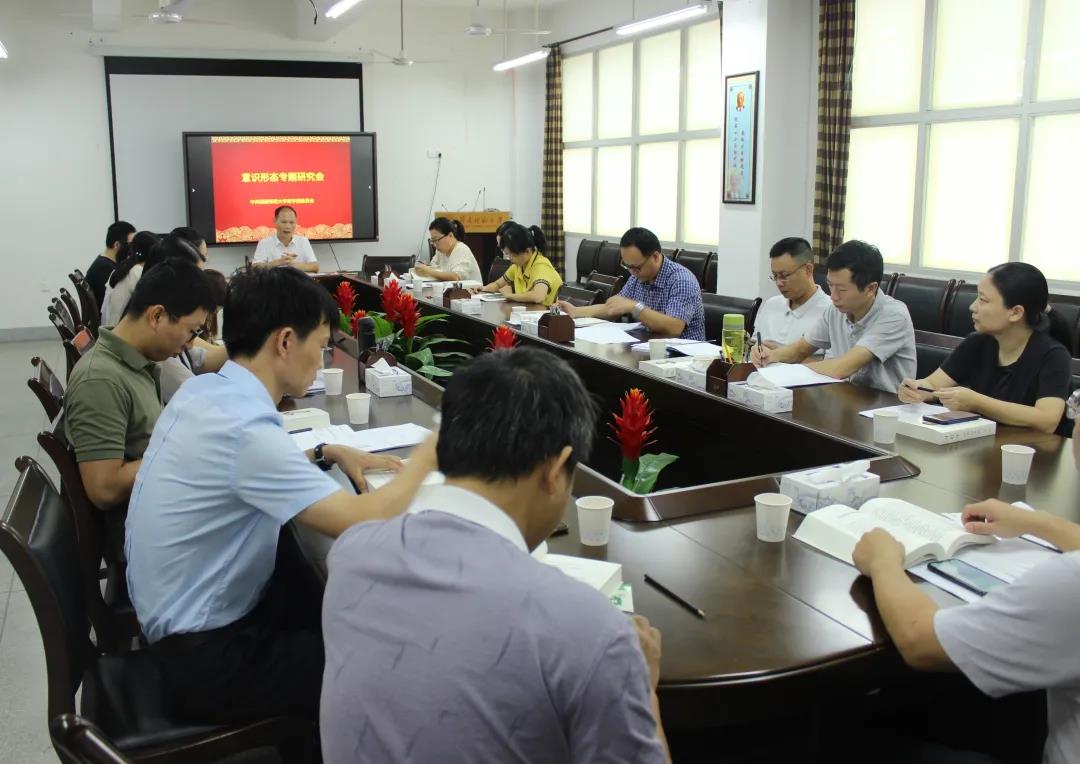 随后,黄书记组织大家认真学习学院意识形态工作责任清单,分析当前意识形态形势,要求大家加强学院网站、微信公众号等新媒体阵地的建设和管控,发挥好网络舆论工具的正面引导作用;扎实做好教材审核把关、课堂巡查、宗教信仰排查等工作。就今后意识形态工作提出三点希望,一是增强政治敏锐性和工作责任感;二是守正创新,提高宣传工作水平;三是全面落实意识形态工作责任制,牢牢把握意识形态的主导权,全面提升学院的意识形态工作能力和水平。