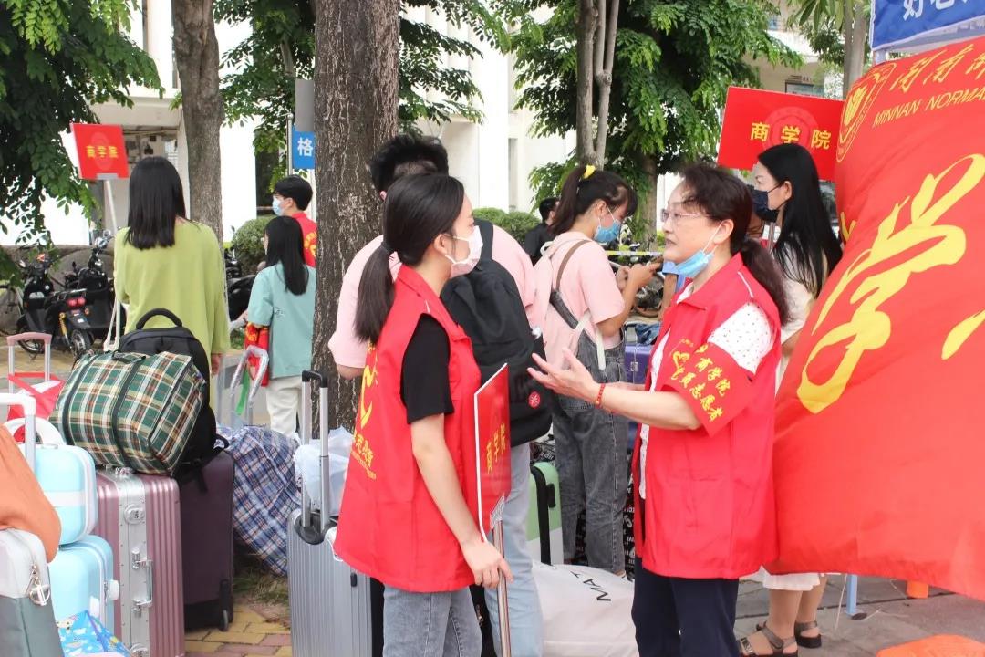 10月12日,学院领导班子带领教职工志愿者投身迎新现场,在校内各接待点为新生搬运行李、答疑解惑,协助他们有序进行身份认证和体温检查,力争确保每一位新生能够有序、便捷、顺利地完成入学手续。活动过程中,教职工们温情护航,以亲切热情的态度为新生带来温暖的入学体验,帮助他们开启了向往已久的大学生活。