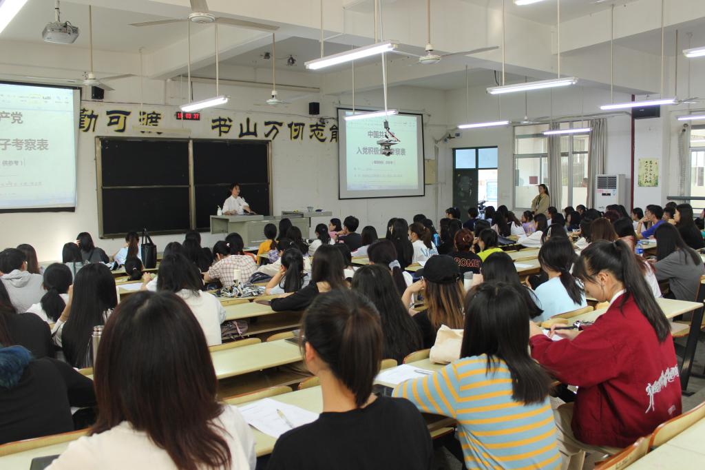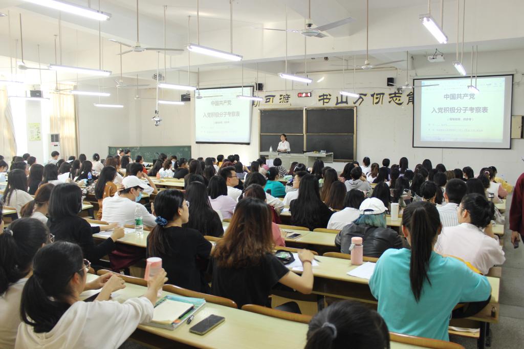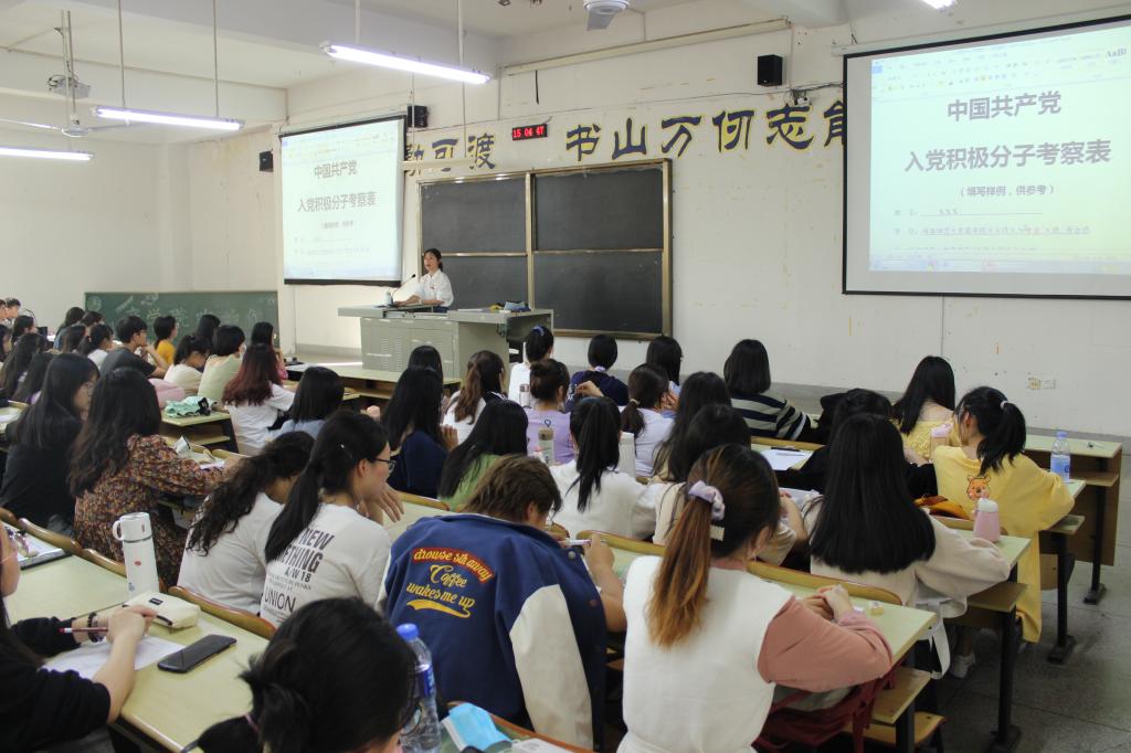 会上,陈老师首先从政治立场、政治素养等方面对同学们提出要求,她指出,作为入党积极分子,在思想上和行动上都要积极向党组织靠拢。接着,陈老师围绕做新时代的信仰者、奋进者和搏击者三个方面,结合习总书记提出的“六个要”以及“七种能力”,就如何向党组织靠拢进行了细致地阐述,并鼓励在座同学不忘来时初心,勇担时代使命,用实干作风融入新时代,实现新作为。随后,党建中心工作人员针对发展党员流程、材料填写规范等方面进行了详细地解说。