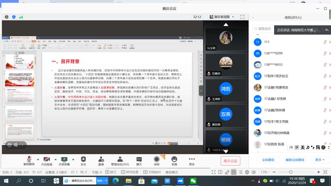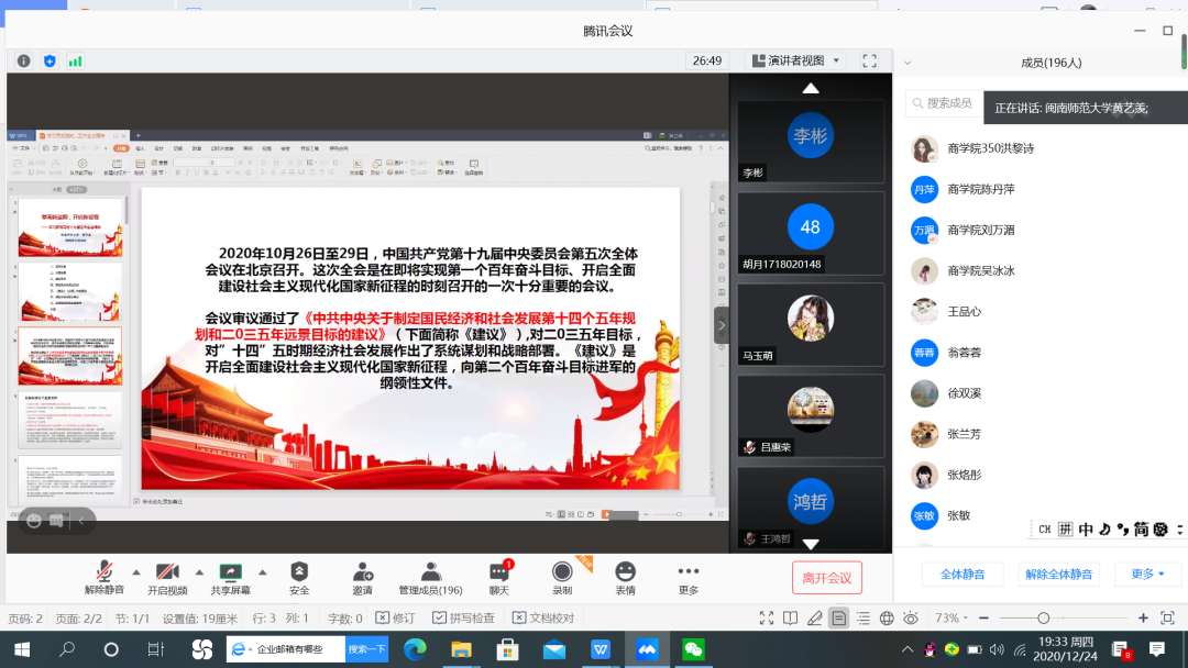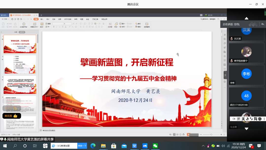 12月24日晚上,马克思主义学院黄艺羡教授为我院师生作题为《擘画新蓝图,开启新征程——党的十九届五中全会精神解读》的专题宣讲。
