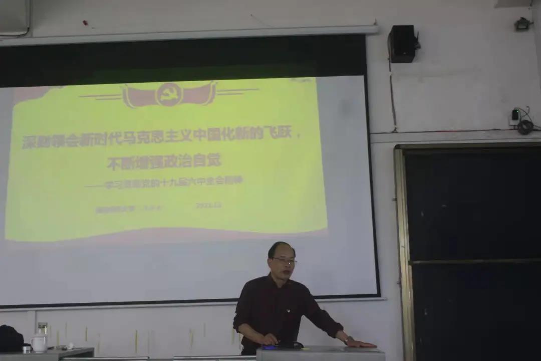 12月16日下午,马克思主义学院吴学兵教授应邀来我院进行学习贯彻党的十九届六中全会精神专题宣讲。院党委书记周霖,院党委副书记、院长张惠萍,院党委副书记王中坚以及全体教职工参加学习。