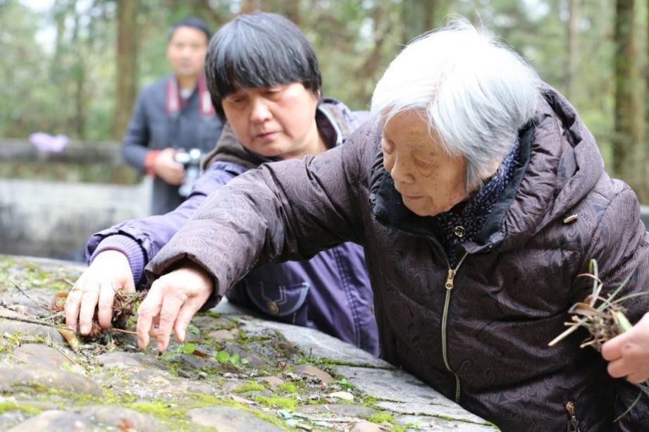 在江西莲花县玉壶山,龚全珍老人为甘祖昌将军扫墓。
